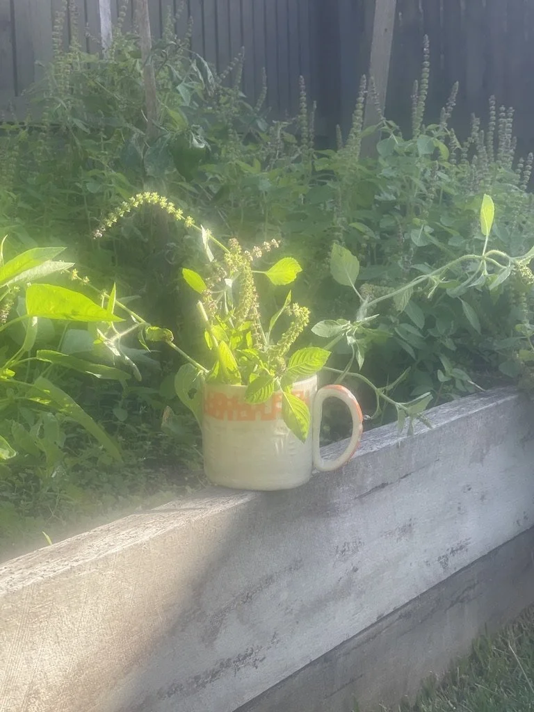 Since then it has run riot, it loves to be everywhere. So I decided I better start using it. The easiest way for me has been a pot of tea every morning to start my work day, the benefits are said to settle the stomach and clear the mind.